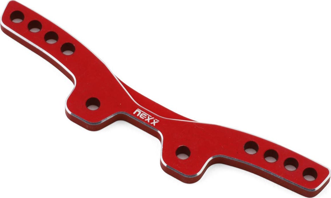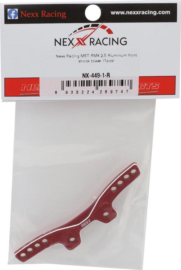 NEXX Racing MST RMX2.5 CNC-Machined Aluminum Front Shock Tower (Type 1) . CNC-machined from super lightweight, rigid and durable aluminum, this optional shock tower is intended for the MST RMX2.5 platforms to enhance handling and eliminate flex for a more responsive feel while tremendously boosting durability compared to the stock composite arms! Package includes one shock tower.