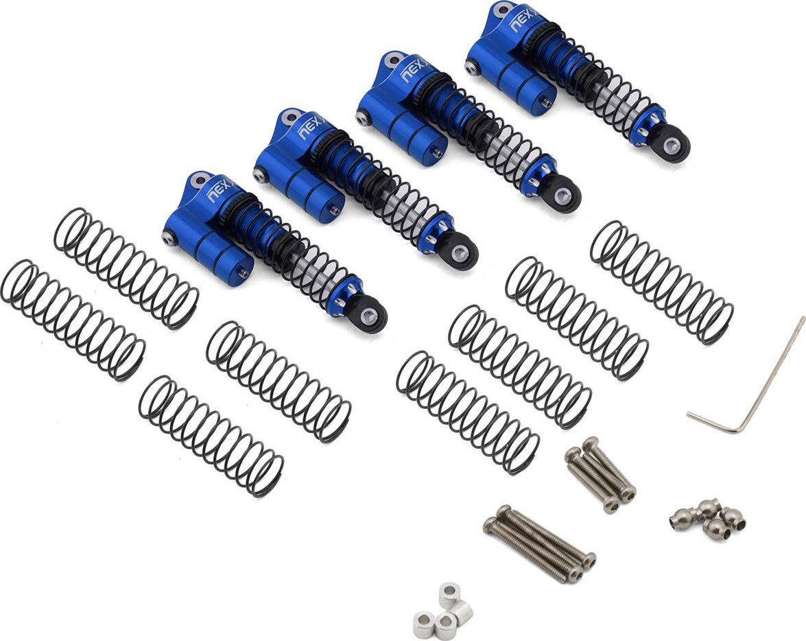 Upgrade your HPI Venture 18 and Hobby Plus CR18P with the NEXX Racing 53mm Aluminum Oil-Filled Threaded Reservoir Shocks, precision-engineered for performance and scale realism. CNC-machined from high-quality aluminum, these shocks feature threaded bodies for quick spring preload adjustments, an inner O-ring sealing system to prevent leaks, and a fully functional oil reservoir with a realistic divider piston and rebound adjustment screw. This delivers ultra-smooth dampening action and expanded tuning capabilities, making them a superior alternative to stock shocks.