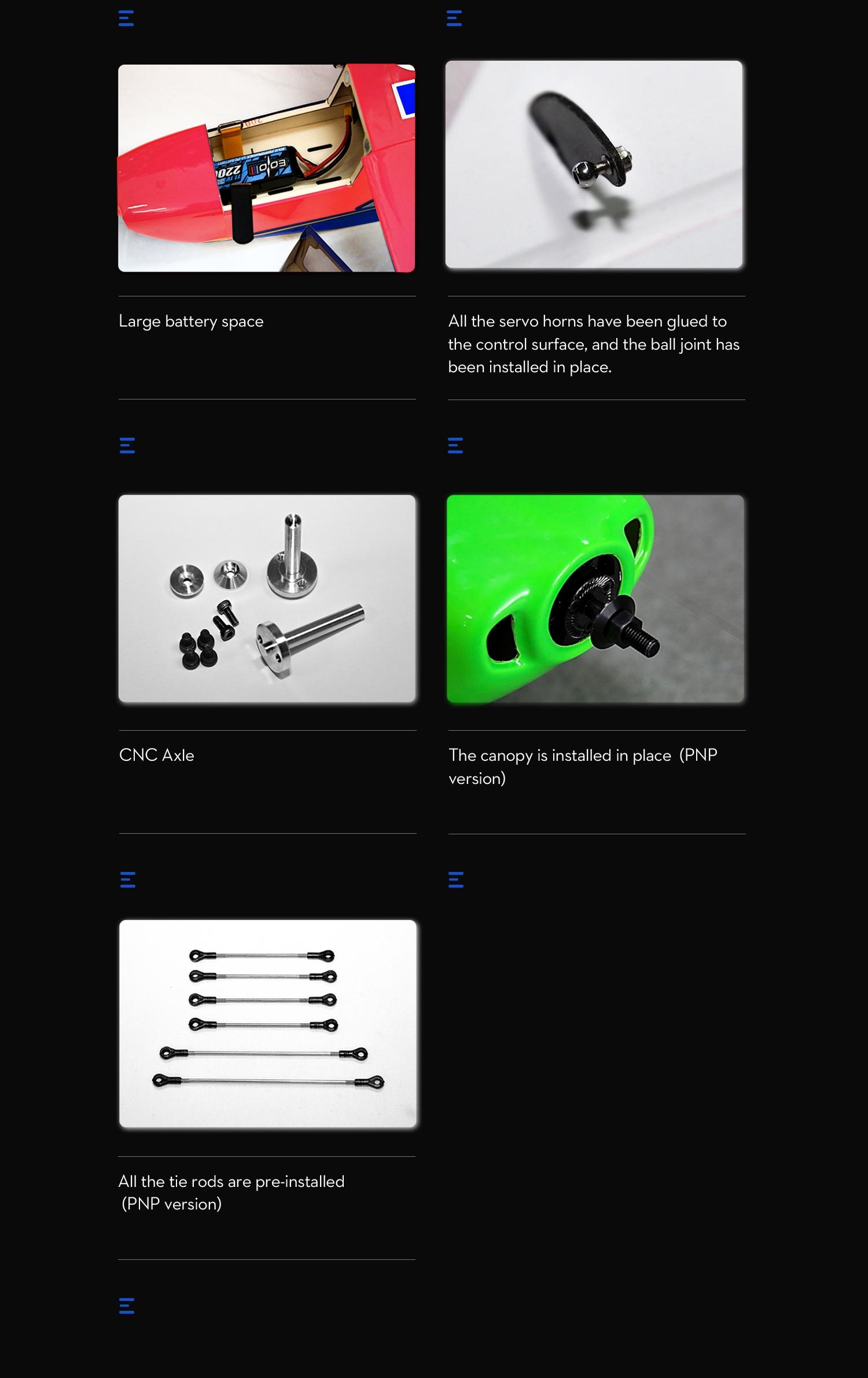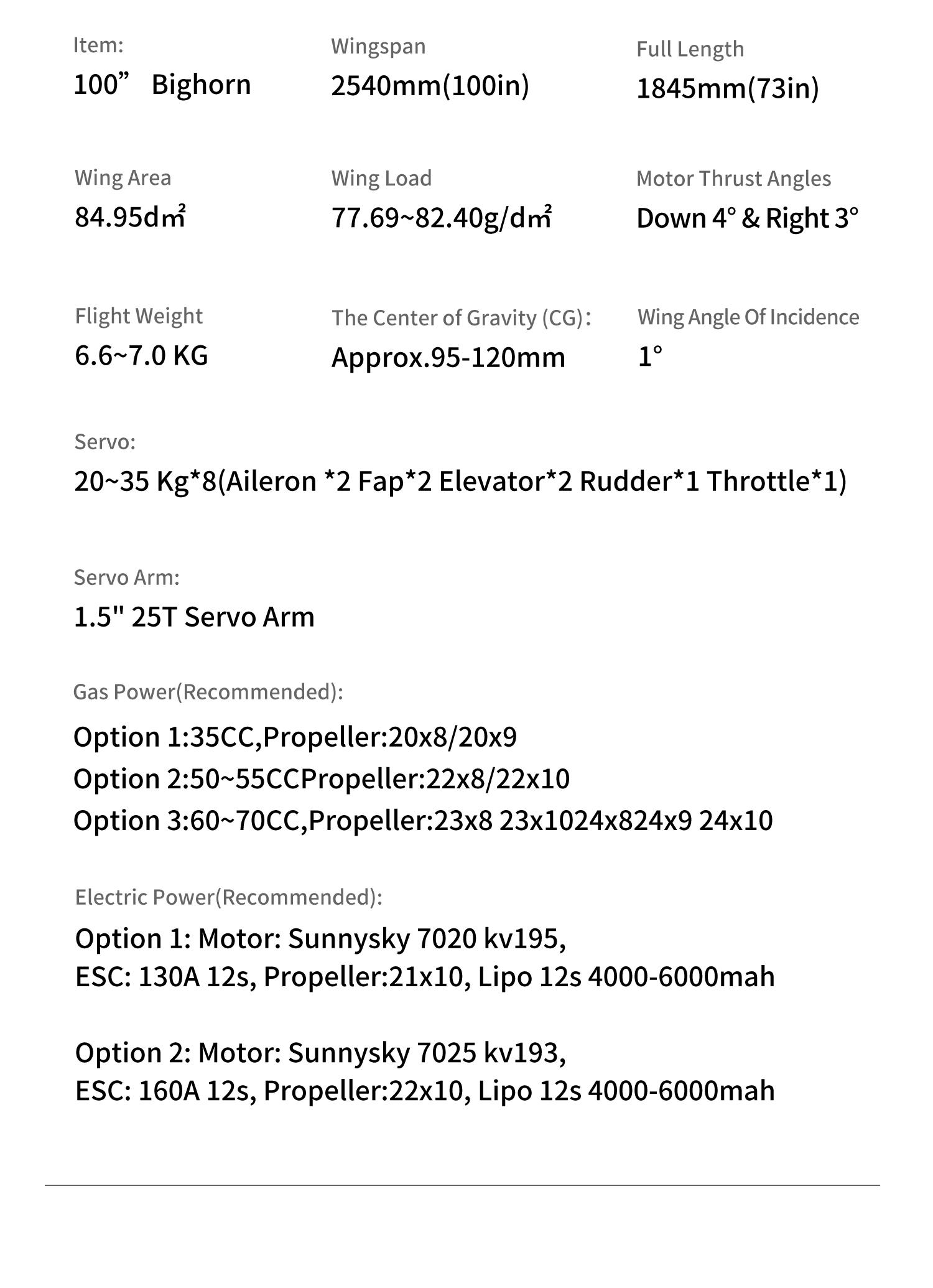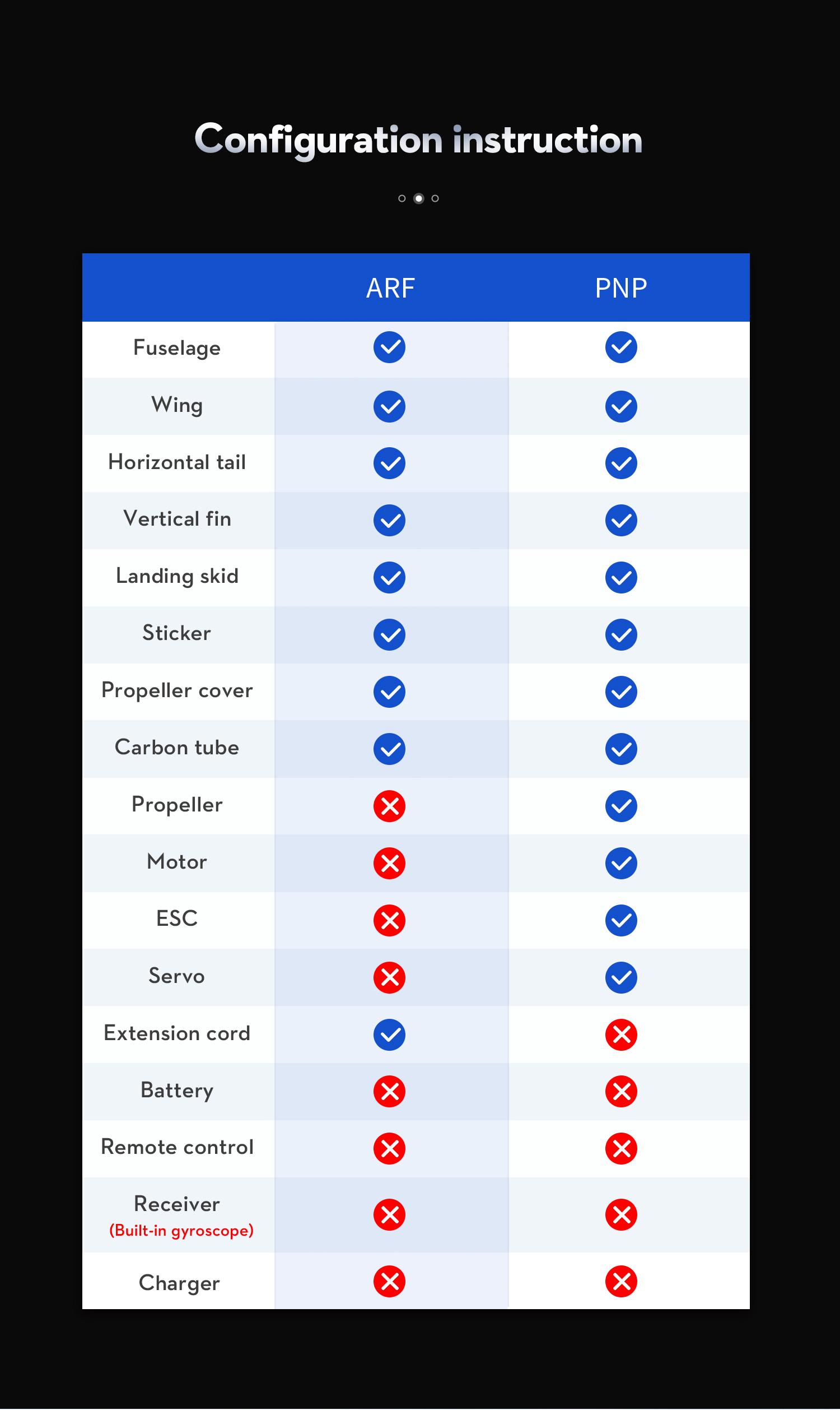 - Requires motor, propeller, ESC, Servos, Battery, radio system and charger