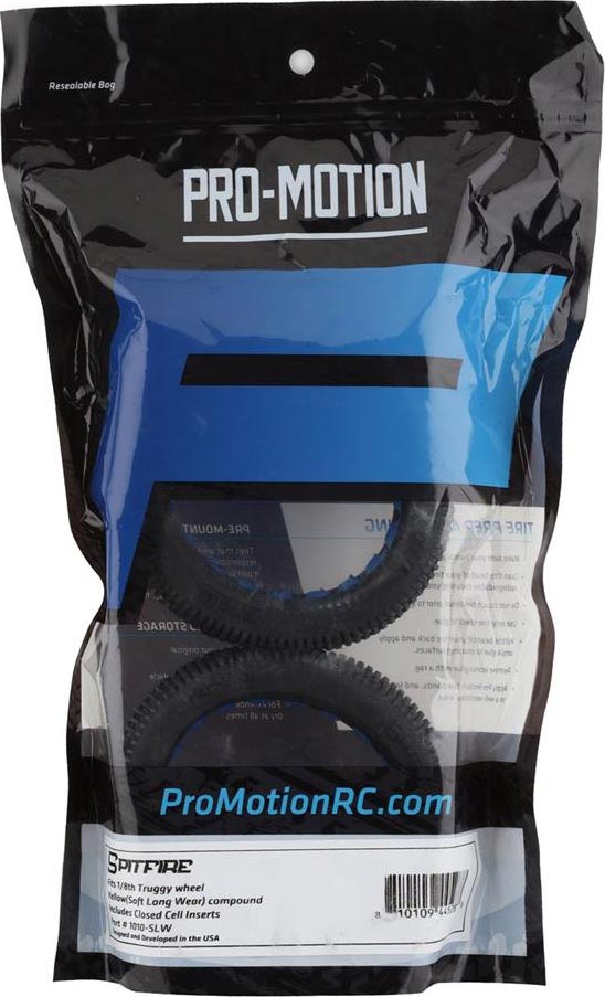 The Pro-Motion Spitfire 1/8 Truggy Tires bring the high performance you expect from Pro-Motion. Featuring a unique design with medium size square pins these tires excel on rough or dusty conditions. The center of the tire uses staggered center pins positioned in sets of three. This helps to reduce side bite in bumpy conditions while increasing feel on high speed turns. These Spitfire tires provide consistent performance you can count on giving you the confidence to reach the podium!