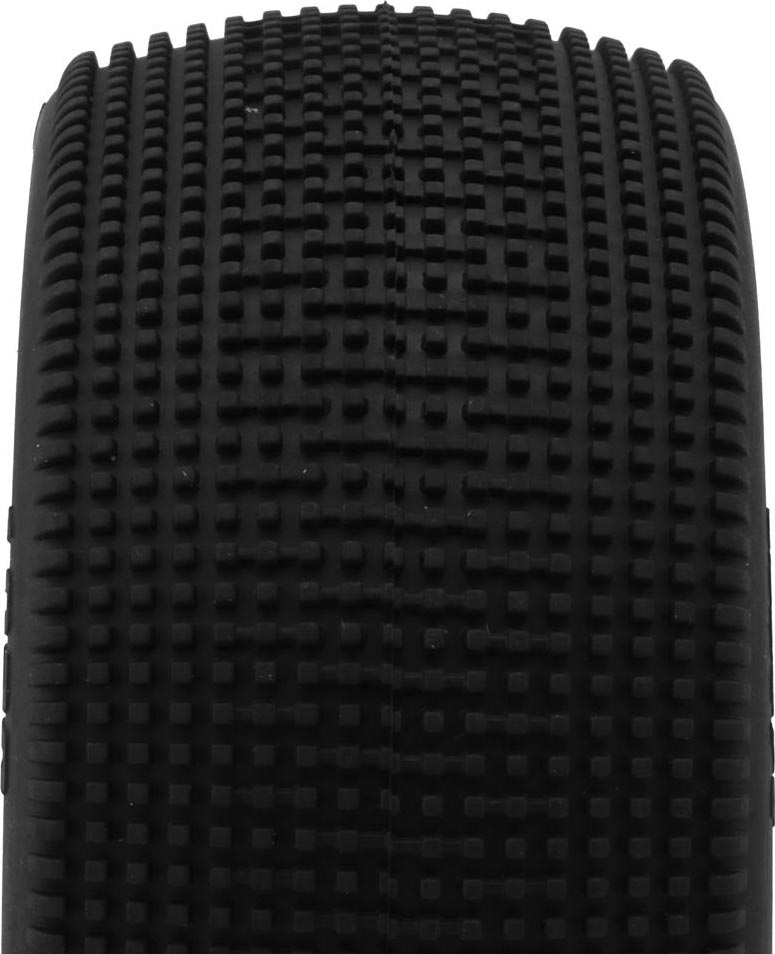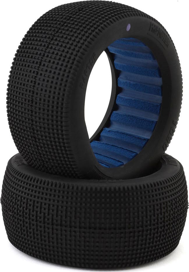 The Pro-Motion Raptor 1/8 Truggy Tires bring the high performance you expect from Pro-Motion. Using small to medium size square pins these tires are an excellent all around tire option. The evenly spaced pins provide great forward bite and consistent traction. Incorporating alternating bridged pins in the middle of the tire helps to keep the pins from rolling over in high speed corners and removes the inconsistency that can be felt in similar tire designs. These Raptor tires provide consistent traction you can count on helping you to reach the podium!