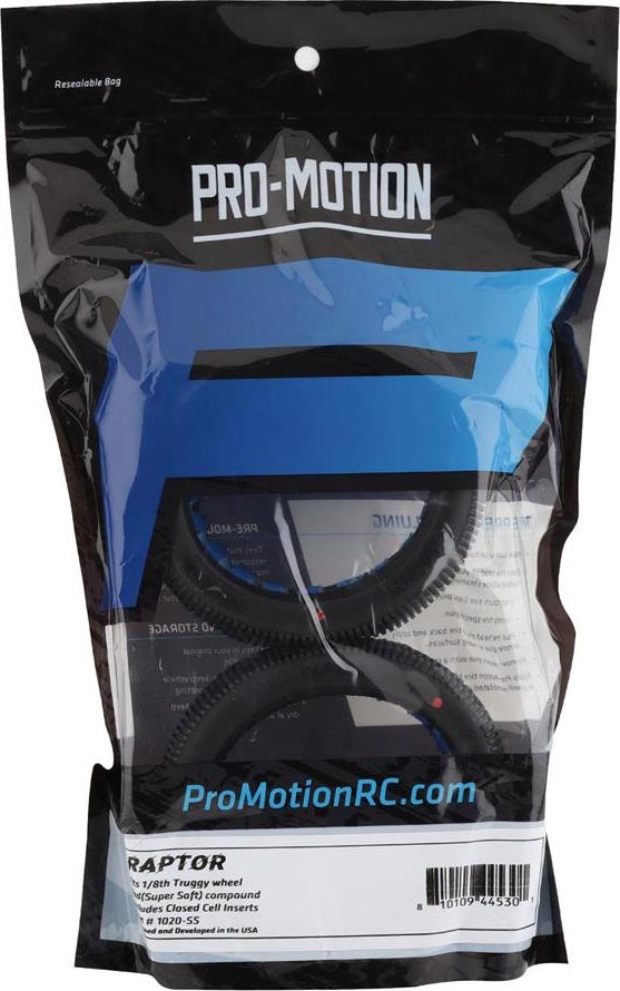 The Pro-Motion Raptor 1/8 Truggy Tires bring the high performance you expect from Pro-Motion. Using small to medium size square pins these tires are an excellent all around tire option. The evenly spaced pins provide great forward bite and consistent traction. Incorporating alternating bridged pins in the middle of the tire helps to keep the pins from rolling over in high speed corners and removes the inconsistency that can be felt in similar tire designs. These Raptor tires provide consistent traction you can count on helping you to reach the podium!