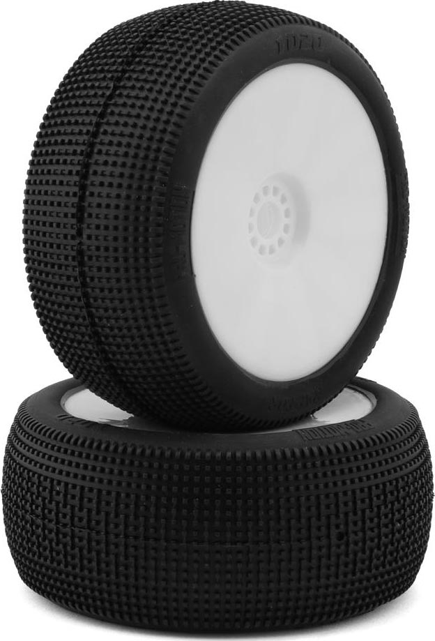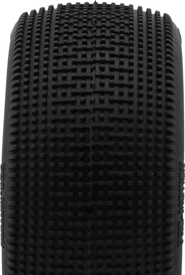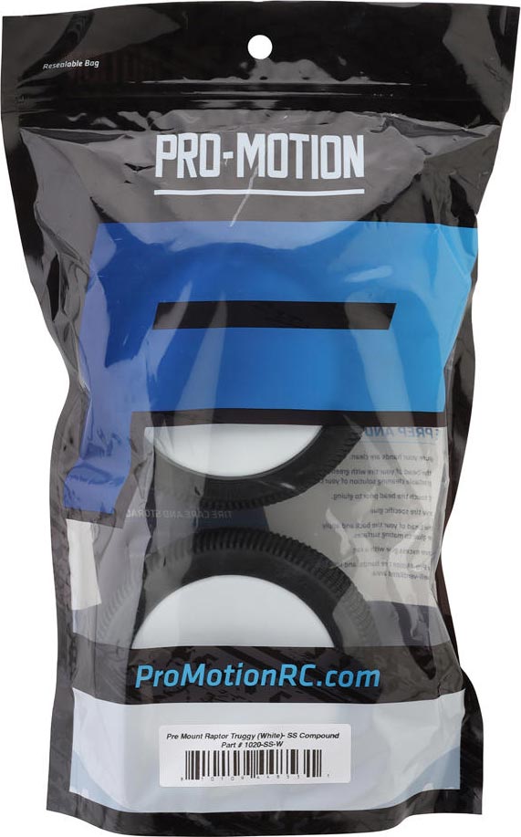 The Pro-Motion Raptor 1/8 Truggy Pre-Mount Tires bring the high performance you expect from Pro-Motion. Using small to medium size square pins these tires are an excellent all around tire option. The evenly spaced pins provide great forward bite and consistent traction. Incorporating alternating bridged pins in the middle of the tire helps to keep the pins from rolling over in high-speed corners and removes the inconsistency that can be felt in similar tire designs. These Raptor tires provide consistent traction you can count on helping you reach the podium!