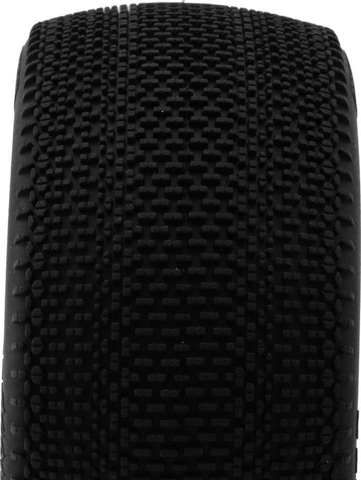 The Phantom brings a unique tread pattern and multi-pin design that will allow for superior grip and forward bite in both indoor and outdoor conditions! The Phantom features a center tread pattern designed to deliver forward bit and extended wear. Moving outward the next section of tread features multi-shaped and sipped to help in track conditions that are deteriorating and may have some dust in the line. The next section of the tread features split and staggered pins similar to the Talon to help provide the grip and speed needed in almost all conditions. Lastly, the outside section of the tread helps to reduce side bite slightly for stability and taper off on the sidewall for high speed cornering!
