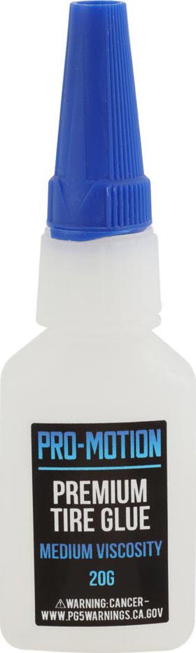 This is the Pro-Motion 20g Bottle of Medium CA Tire Glue, Specially formulated for the ultimate tire bond. Along with the ultimate bond, the bottle design is easy to use and works perfectly with Pro-Motion glue dispensing tip. Comes in handy 20g bottles with a screw type cap for long term storage and transportation.
