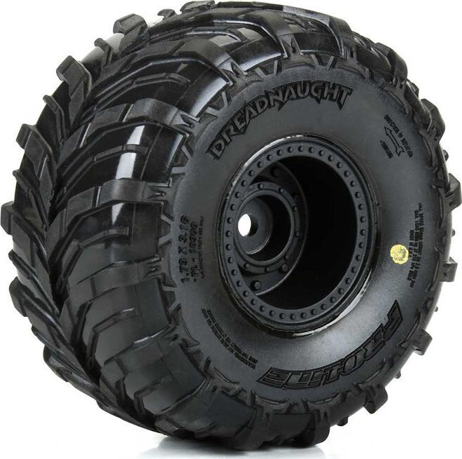 Dreadnaught Mounted Black Wheel F/R (4) for Arrma