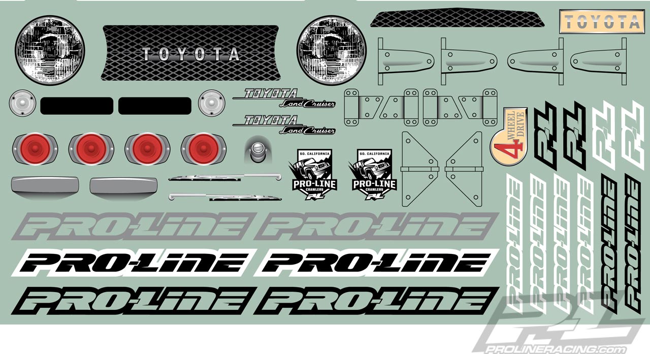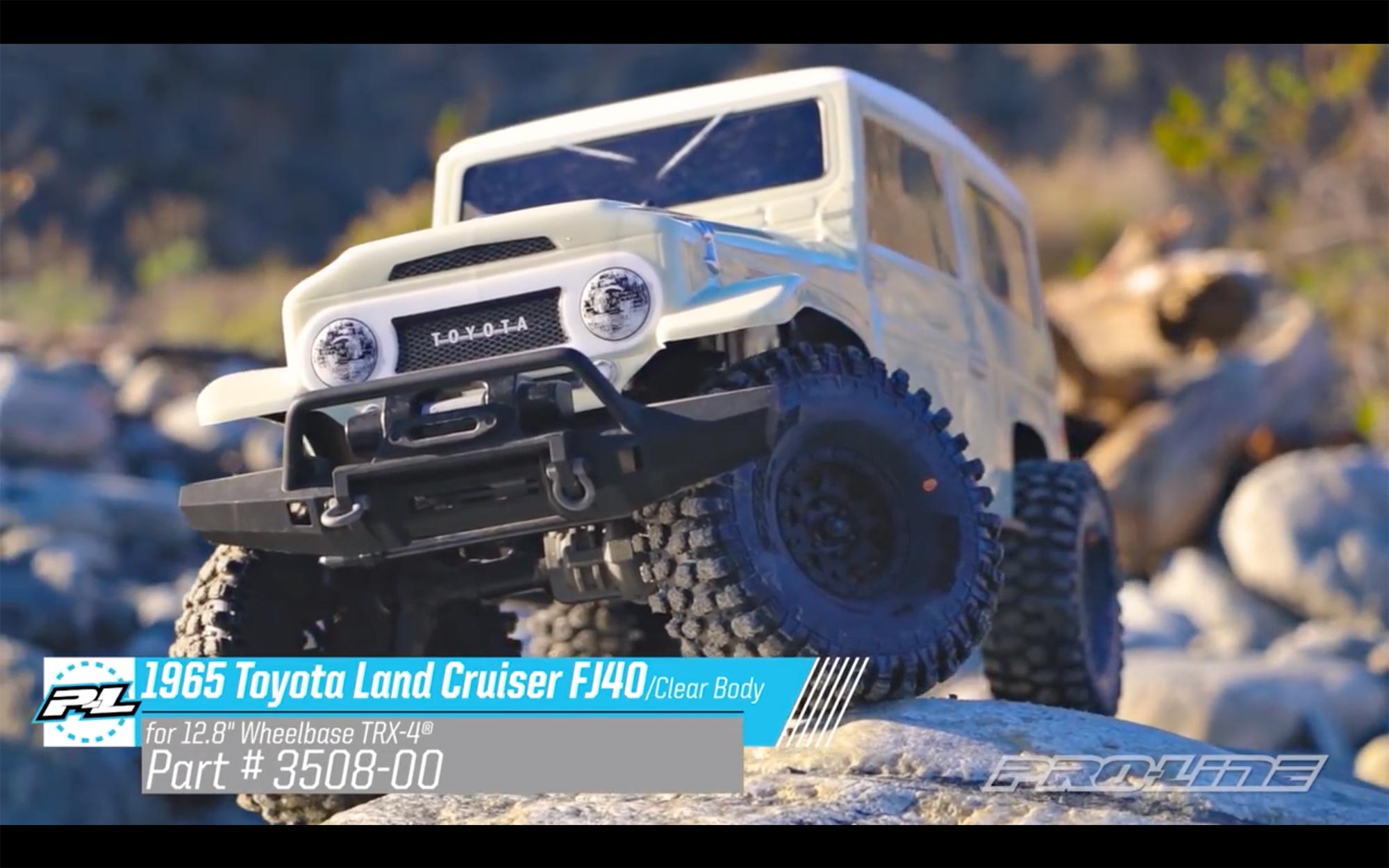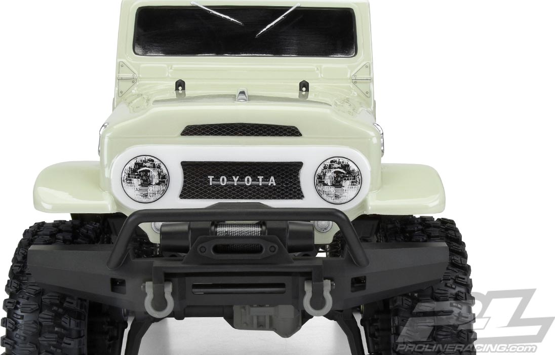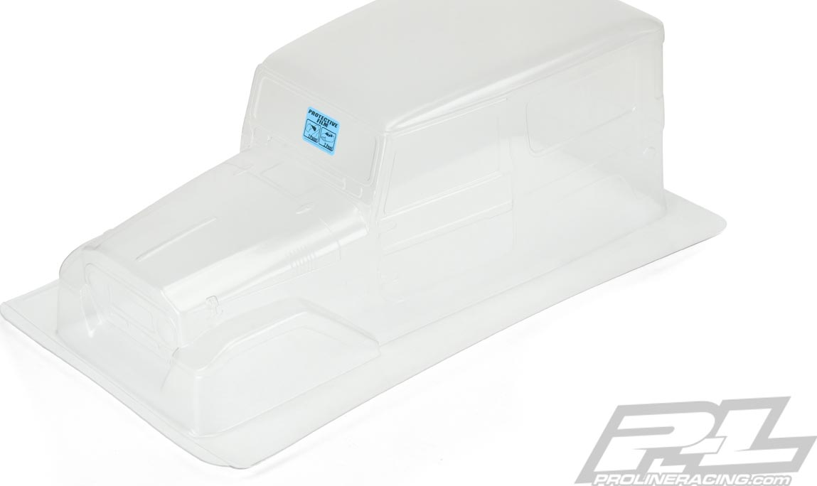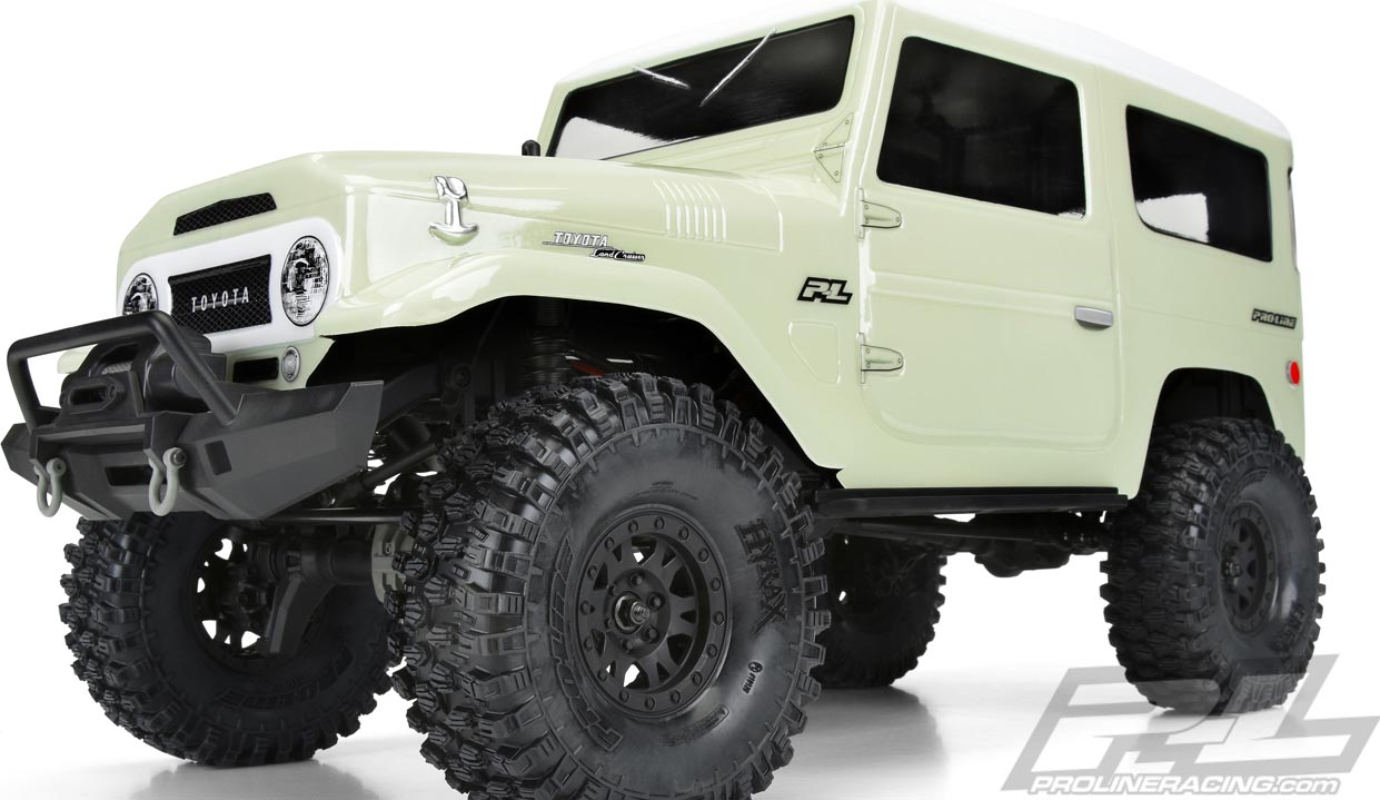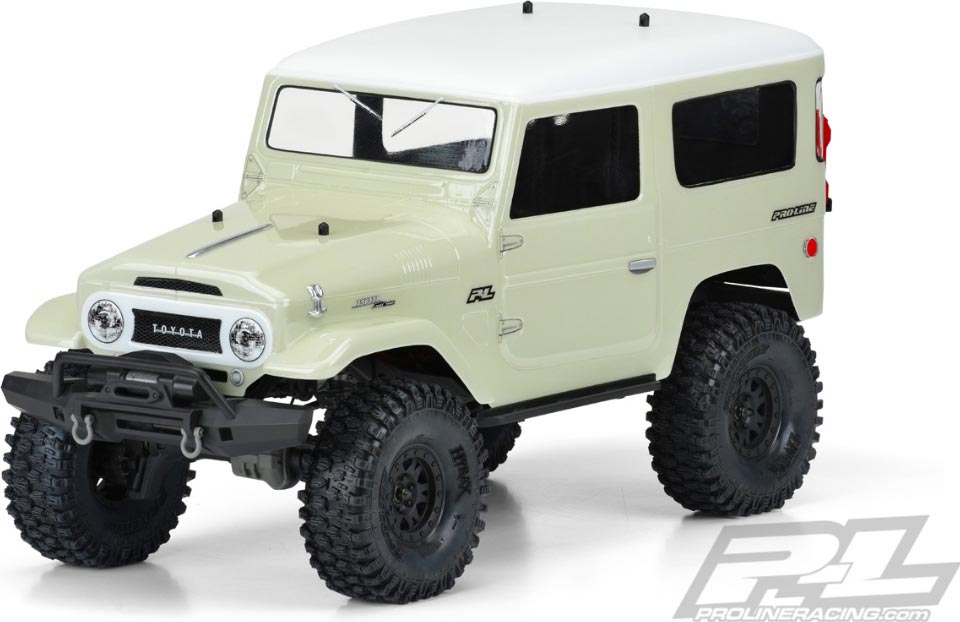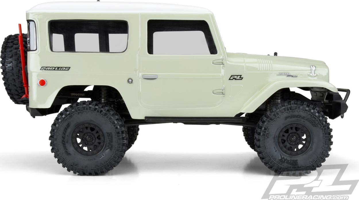 This single piece Pro-Line body is very light for a lower center of gravity and improved crawling performance and is designed to drop right onto the stock 12.8" wheelbase TRX-4. Window masks, Paint-then-peel overspray film and fully licensed detailed stickers are included to finish off the look. Raise the bar and get your own Pro-Line 1965 Toyota FJ40 Land Cruiser for 12.8” Crawler now!