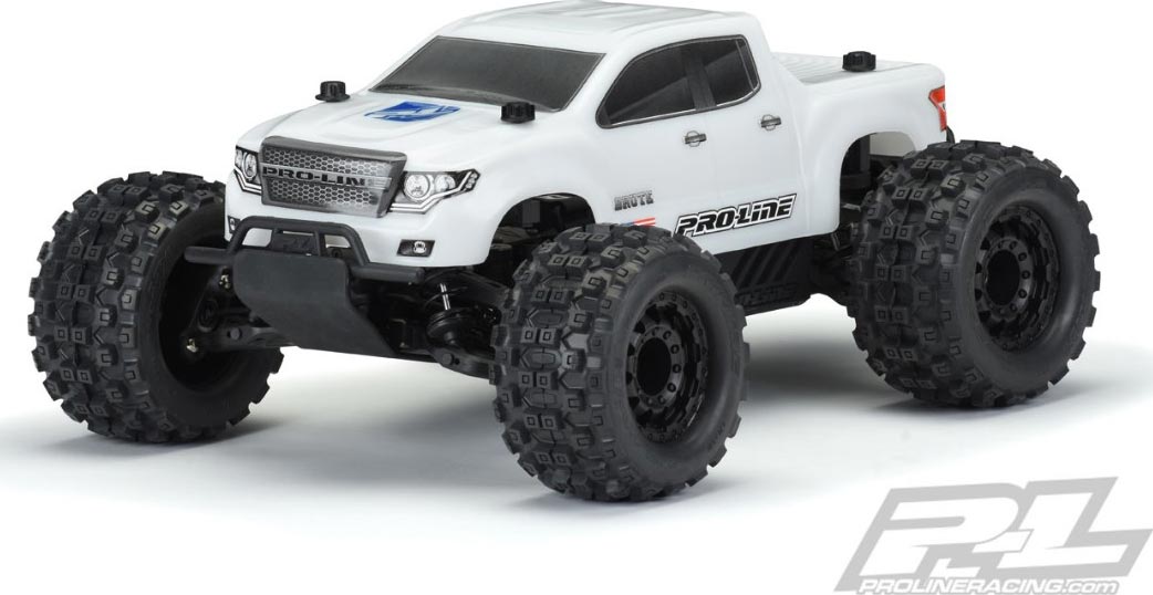This is a Pre-Cut Brute Bash Armor White Body for PRO-MT 4x4 & Stampede 4x4. Pro-Line has developed the Ultimate Bash body for your PRO-MT 4x4 & Stampede 4x4 – the pre-cut Brute body featuring Pro-Line's all-new Bash Armor material! If you are like us, you want a dependable high strength body you can count on for your truck. The Brute Bash Armor White Body has been developed from the ground up to be the toughest body Pro-Line has ever produced. The all-new Bash Armor material is twice as thick as regular 1:10 truck bodies and is ultra-flexible to reduce the chance of cracking and shattering. Unlike clear polycarbonate, the Bash Armor material is White and is not paintable, so Pro-Line includes detailed decal sheets to complete the look. The Brute is Pro-Line's take on a modern truck and features a bold grill with eye-pleasing body lines sure to turn heads at your local bash spot. If you are ready to battle your buddies, then get the strongest body possible for your truck - the Pre-Cut Brute body with Bash Armor material technology!