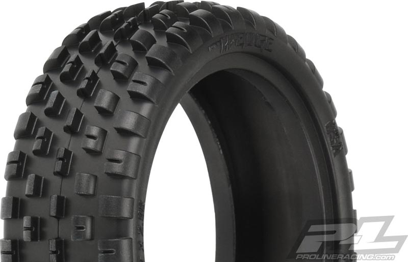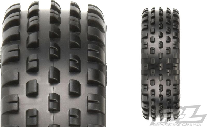 This is a pair of Wide Wedge Buggy 2WD Front Carpet Tires. The Wide Wedge brings the popular Wedge tread pattern to a tire carcass that fits on standard 2wd Front Wheels! That means no more cutting wheels or needing special narrow 2wd front wheels. The extra tire width allows for an additional row of tread which the Pro-Line Engineers used to make the tire directional, meaning the tire can be mounted for either more aggressive steering or less! The Wide Wedge has a true drop-in bead that does not require cutting or hand fitting and is super low-profile just like you would expect out of your carpet tires. The Hook shaped pins that the Wedge design is known for provide all the steering you can handle without being grabby. Pro-Line’s Z compounds provide unparalleled grip on a variety of surfaces used indoor (carpet, wood, cardboard, plastic, etc.) while still being long lasting. Be on the cutting edge of carpet tire technology with Pro-Line’s new Wide Wedge 2wd Front Tires!
