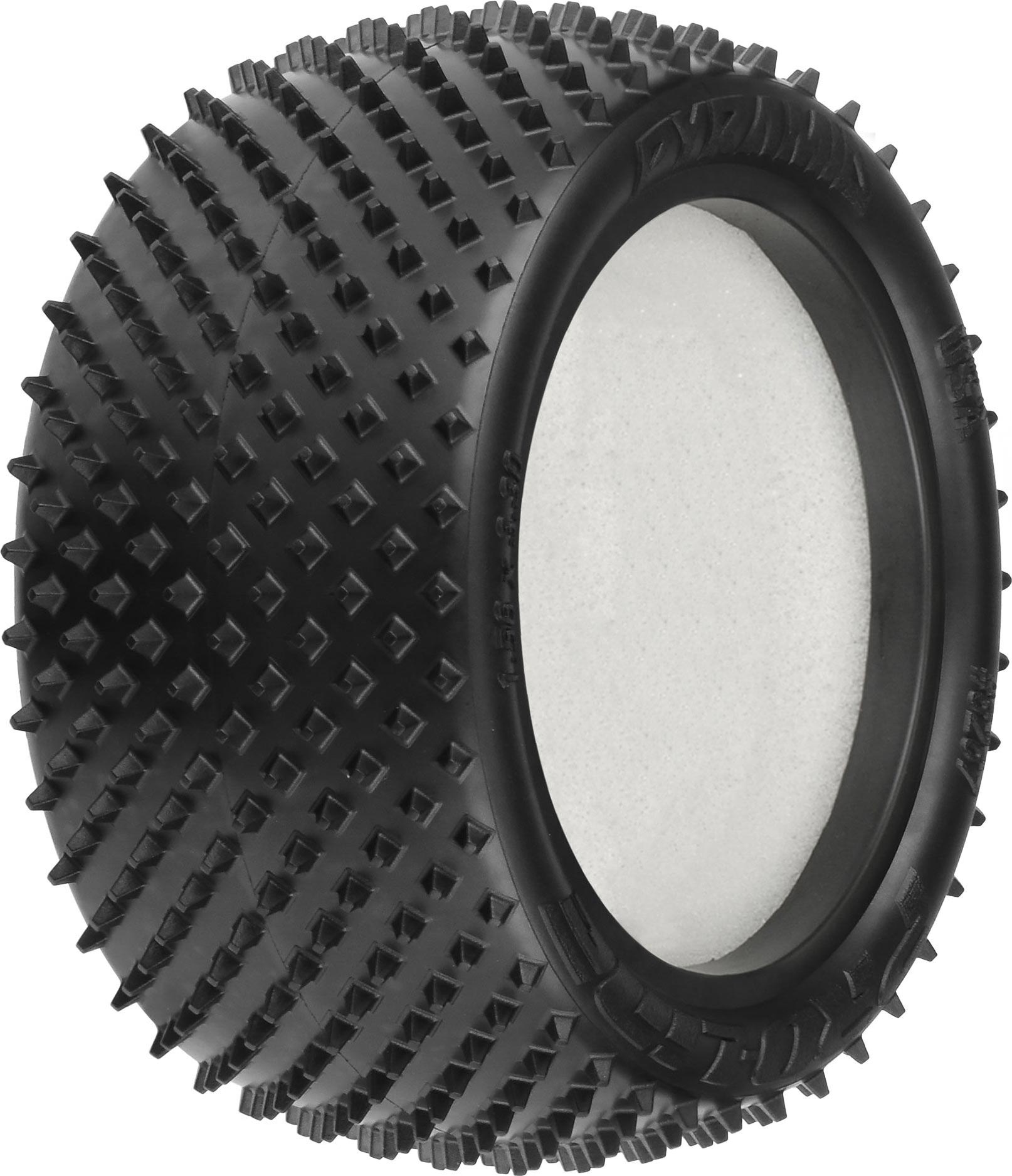 This is a pair of Pyramid Buggy Rear Tires. Astro turf racing has been steadily growing in the U.S. and around the World and Pro-Line has you covered with the Pyramid buggy rear tire! The Pyramid features hundreds of large pyramid shaped pins with the knife edge pointed front to back and side to side for maximum grip that stay sharp even as they wear down. The carcass shape has been optimized for the demands of Astro racing, which is slightly smaller and narrow than standard dirt tires for improved agility. The Pyramid comes in Medium (CR3) compounds for hot weather conditions. If you are going Astro turf racing, you need some Pyramids! Get yours today!