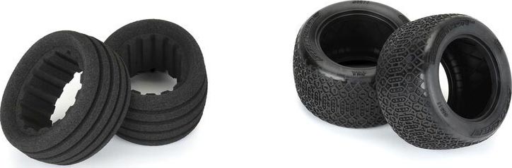 The Electron 2.0 T is constructed on Pro-Line's latest generation carcass profile that utilizes a single arc to create the sidewall geometry, then transitions from the sidewall to the crown with a larger radius resulting in a rounder and less edgy appearance. This carcass provides a tailored fit to the wheel and insert package, making mounting a breeze. Racers can expect the Electron 2.0 tires to deliver improved consistency, drivability, and durability.