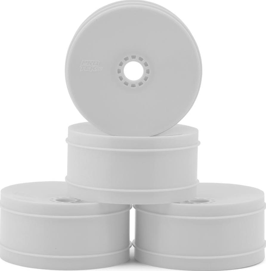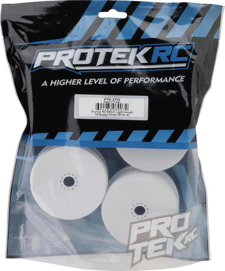 With a commitment to serious racers ProTek RC offers several options when it comes to 1/8 Buggy wheels, making them ideal for any track condition. The standard wheel (PTK-2750) offers a concave outer face with integrated internal support ribs adding rigidity for better control on smooth, high speed tracks. In contrast the "Light Weight" wheels remove the internal ribs for a sleek smooth look, reducing any chance of mud packing up during wet track conditions. With the absence of the internal ribs these wheels are also more flexible keeping your buggy planted through bumpy or choppy sections of the track.