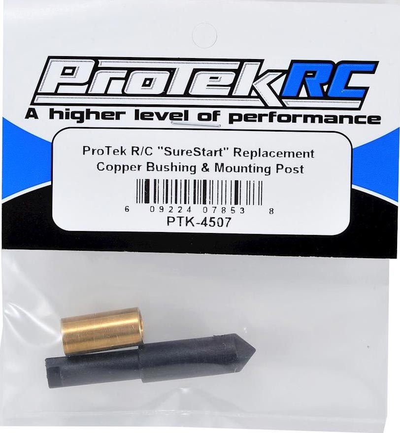 This is a replacement ProTek R/C "SureStart" Copper Bushing & Mounting Post Set, and is intended for use with the ProTek R/C "SureStart" 1/8 off road starter box (PTK4500). Package includes one copper bushing and one mounting post.