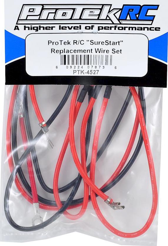 This is a replacement ProTek R/C "SureStart" Wire Set, and is intended for use with the ProTek R/C "SureStart" 1/8 off road starter box (PTK4500). This is the complete wire assembly, and is fully assembled with t-style plugs and soldered connections.