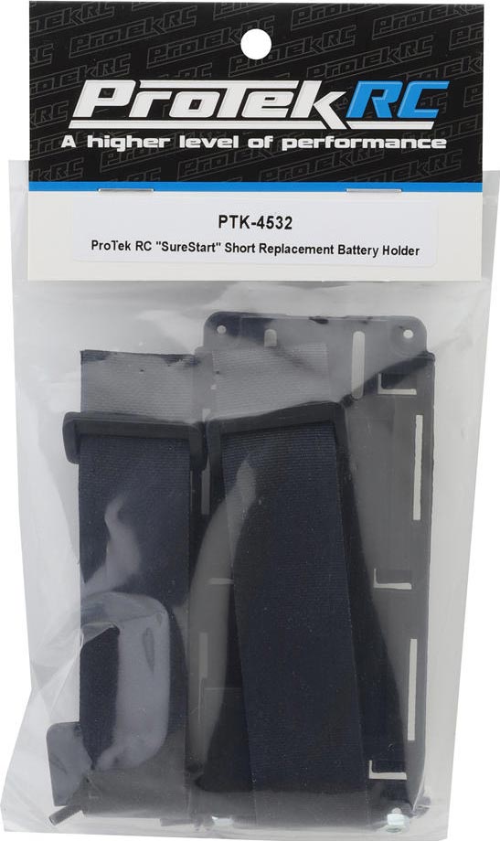 ProTek RC "SureStart" Short Battery Holder Set. This replacement battery holder set is intended for the ProTek RC ("SureStart" - PTK-4500), allowing for a standard stick pack or a shorty pack to be securely mounted. Package includes a lower battery holder, a battery strap and mounting hardware.