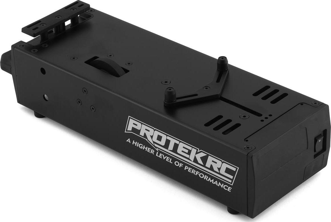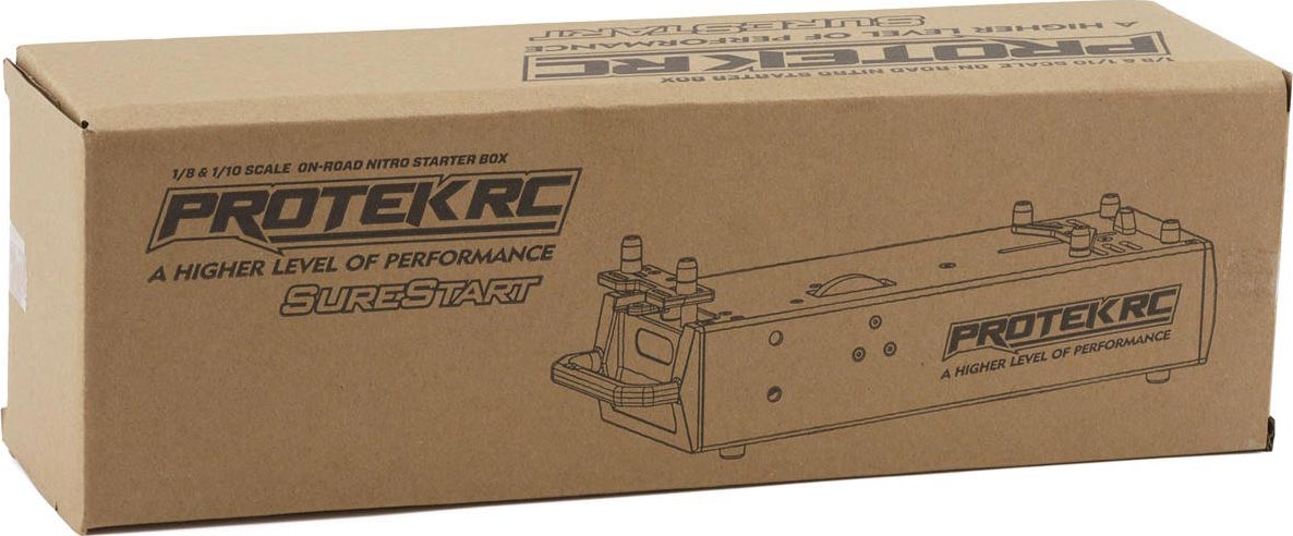 Introducing the ProTek R/C "SureStart" Professional 1/10 & 1/8 On-Road Starter Box: a potent, economical, and dependable companion for fuel on-road enthusiasts. Engineered to surpass expectations, this starter box effortlessly tackles tight engines, making it ideal for breaking in new ones. Equipped with high power - 775 size motor, the "SureStart" generates ample power to conquer even the most stubborn engines. Pre-installed T-Style connectors ensure a seamless, low-resistance connection from the get-go. Boasting high-quality 16awg silicone shielded wiring and quick-change connectors, maintenance is a breeze.