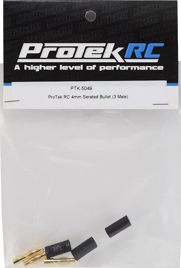 ProTek R/C 4mm Serrated Male Bullets are great for a variety of applications! These are great for battery connectors or motor to speed control connectors. Package includes three bullets and heat shrink tubing.