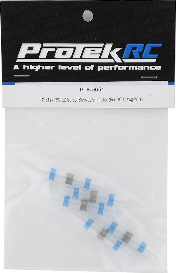 ProTek R/C 5mm EZ Solder Sleeves are heat-shrinkable solder-type butt connectors designed to make splicing 16-14awg wires simple and effective. Compatible with both surface and air applications, as well as a variety of other uses, these solder sleeves provide a reliable alternative to soldering, crimping, and conventional twist-on-style closed-end connectors.