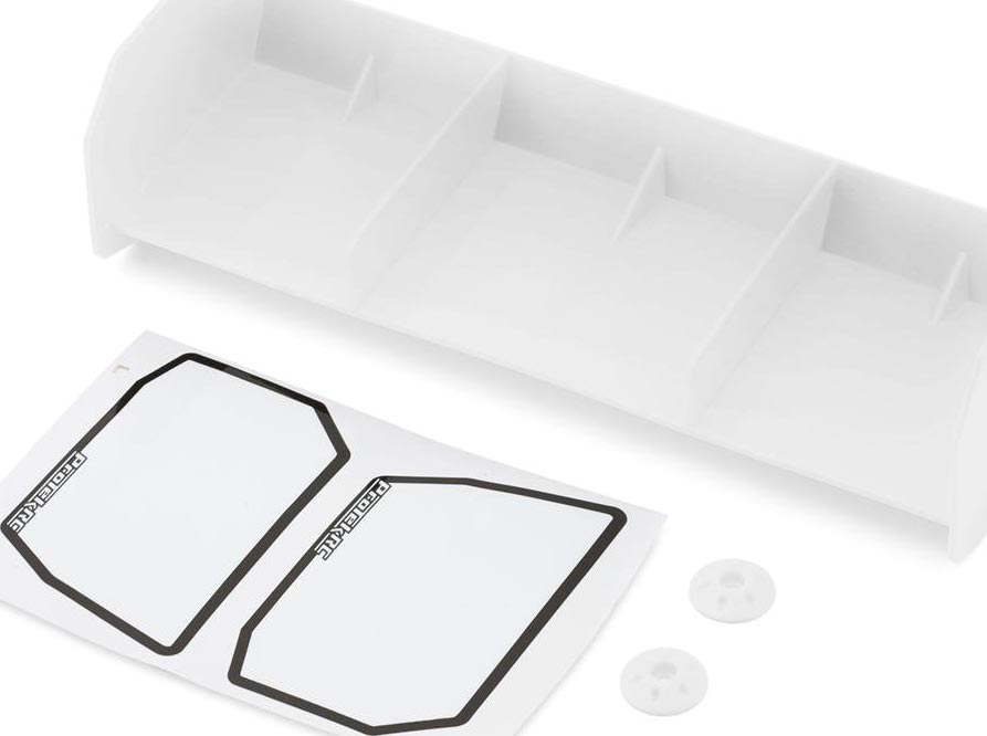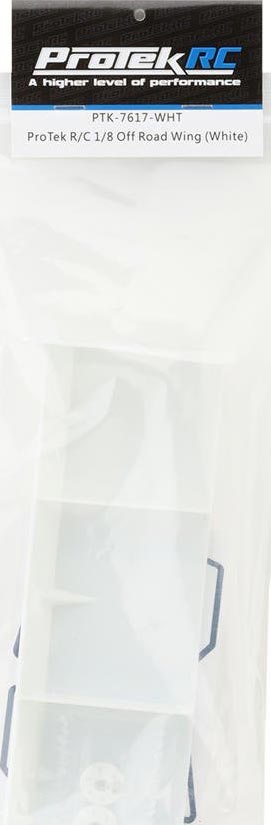 ProTek RC 1/8 Off-Road Euro Wing. Molded from top quality material to provide supreme durability and reliability, this optional 1/8 Off-Road Euro Wing with tall vertical side dams is intended for 1/8 buggy and truggy platforms to provide the ultimate cornering stability and precision! In addition, the Higher rear dam structure with pre-Marked dimples allows racers to fine-tune the downforce level by drilling different size holes to increase or decrease the downforce accordingly for different track conditions giving you a distinct advantage in any condition! Separate yourself from the competition and experience a higher degree of excellence and performance with this 1/8 Off-Road Euro Wing from ProTek!