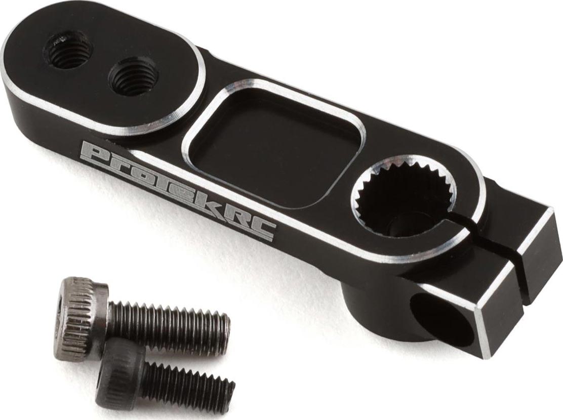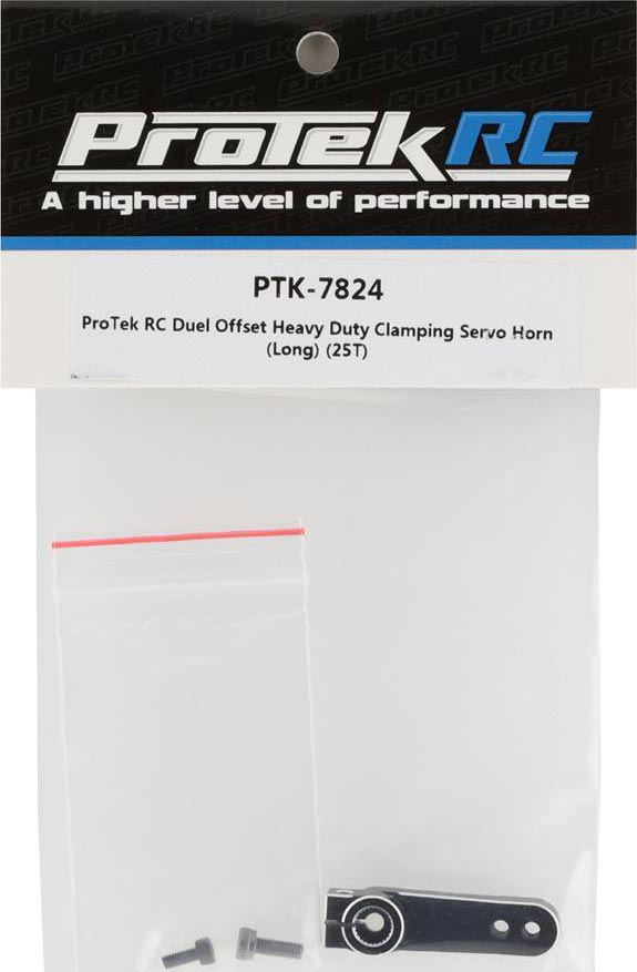 The ProTek R/C Dual Offset Heavy Duty Clamping Servo Horn features a dual offset allowing you to choose the best offset for your setup. The 4mm thick horn has a 25mm and 20mm hole spacing threaded for 3mm hardware to suit the geometry and hardware requirements of most vehicles. Package includes one long servo horn, one 3x10mm button head screw and one 2x7.5mm clamp screw.