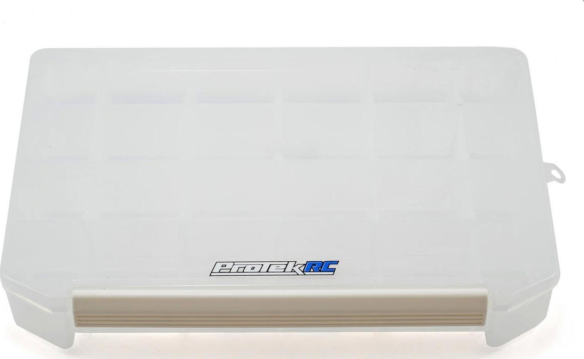 This is the ProTek R/C Large Plastic Storage Container. ProTek R/C understands that staying organized is a key component to success. Organization helps you remain calm, on task and focused on what's important. Searching for lost parts can be frustrating and a huge waste of time. When you need a part, you need to know exactly where it is, every time.
