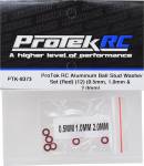 This ProTek R/C Aluminum Ball Stud Washer Set includes 3x5.5mm Red anodized aluminum washers in the following thicknesses: 0.5mm, 1.0mm and 2.0mm. There are four washers included for each thickness, equaling twelve washers total.