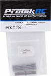 This is the ProTek R/C TLR 22X-4 Grade 5 Titanium Turnbuckle Kit. These titanium turnbuckles are CNC machined and thread rolled to near-exact tolerances from high-quality 6AL-4V (Grade 5) titanium alloy material and polished to a brilliant finish. Each turnbuckle is marked with thread directions for easy identification, with standard sized threads on each end for the intended model.