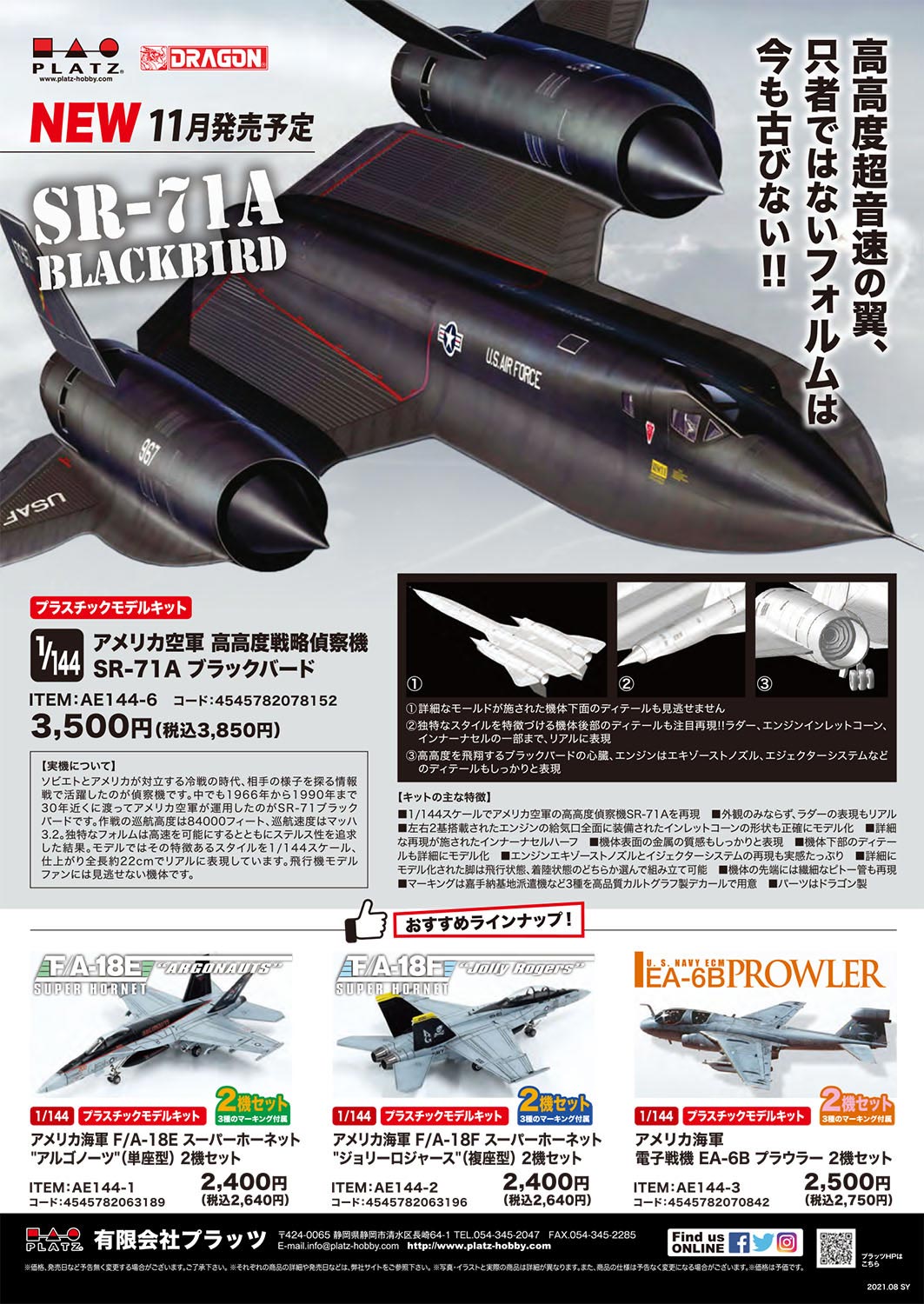 1/144 USAF Strategic Reconnaissance Aircraft SR-71A Blackbi