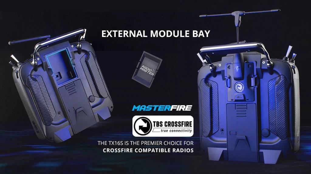 Offered with a factory installed ExpressLRS Internal module. The TX16S also natively supports Team Black Sheep MicroTX modules in CRSFmode with LUA scripts. Best of all the TX16S Internal ExpressLRS module allows you to keep the TBS MicroTX installed and switch between internal RF and Crossfire via software, no more module swapping for full backwards compatibility with your existing Crossfire equipped gear.