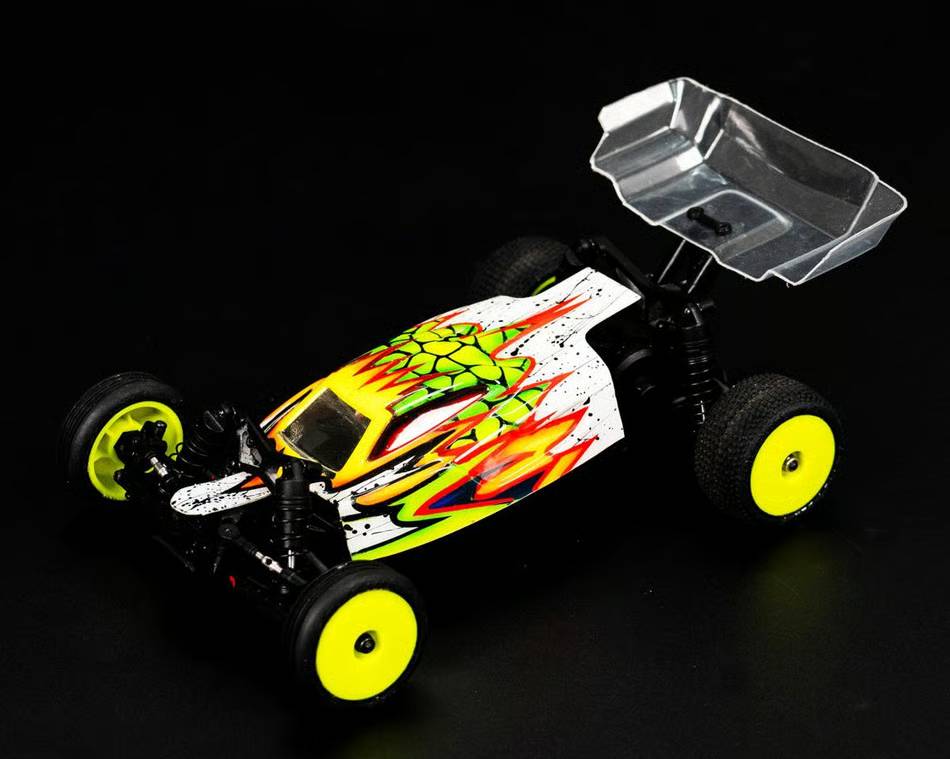 Upgrade your Losi Micro-B with the Radianz Velo Lexan Body, a pre-painted masterpiece designed for performance and style. Crafted from durable Lexan, this body features a striking custom splatter design with green scales, ensuring your Micro-B stands out on the track. Its aerodynamic contours enhance stability and responsiveness, making it a perfect fit for high-speed racing. Precision-cut for a seamless fit, this body offers an easy way to personalize your buggy while maintaining a professional, race-ready look.