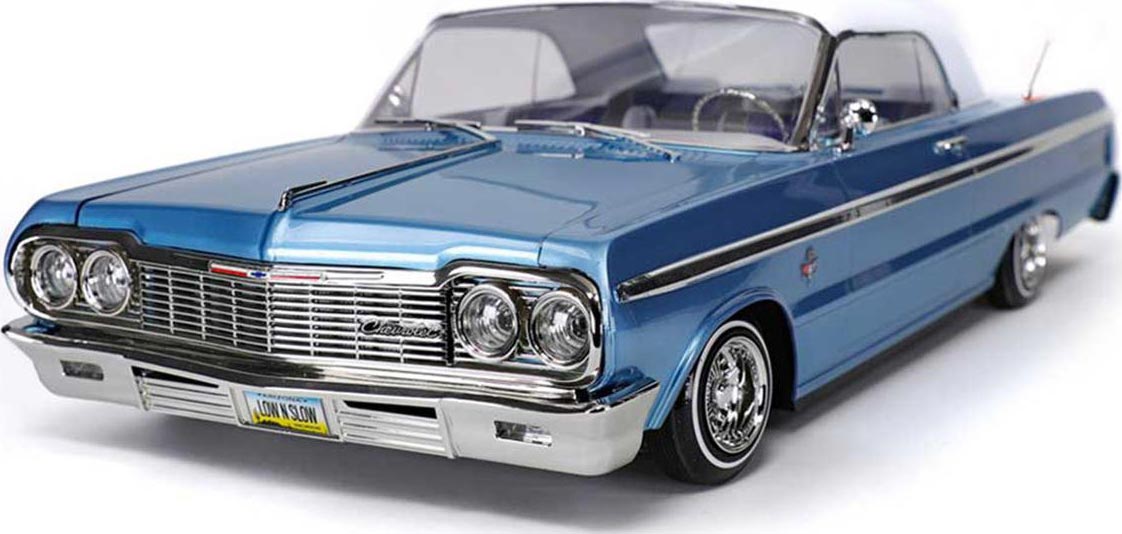 The Redcat SixtyFour Chevrolet Impala SS Classic 64 edition is a 1:10 scale, ready-to-run RC lowrider inspired by the iconic 1964 Chevy Impala SS 2-door hardtop. It features magnetic body mounts, an upgraded hopping bellcrank, enhanced servos, black suspension links, redesigned rims, tires, and comes in three color options. Since its launch in November 2020, the SixtyFour has become a hit among automotive and lowrider enthusiasts, delivering exceptional detail and functionality with a six-channel radio, battery, and charger included.