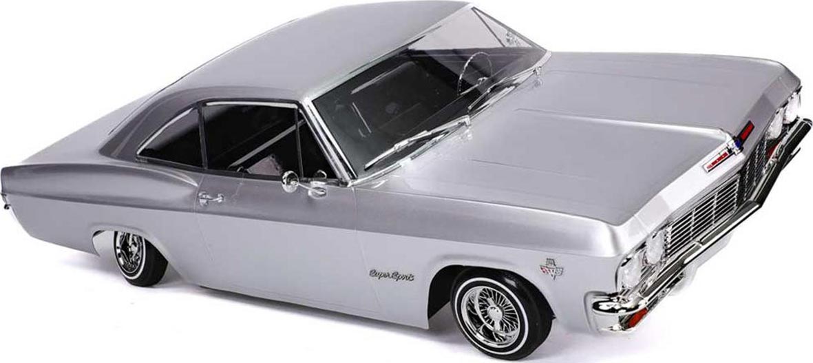 The Redcat Sixty Five Chevrolet Impala SS Classic 65 edition is a 1:10 scale, ready-to-run RC lowrider inspired by the iconic 1965 Chevy Impala SS two-door hardtop. It features magnetic body mounts, an upgraded hopping bellcrank, enhanced servos, black suspension links, redesigned rims, tires, and comes in three color options. Since its launch in November 2020, the Sixty Five has become a hit among automotive and lowrider enthusiasts, delivering exceptional detail and functionality with a six-channel radio, battery, and charger included.