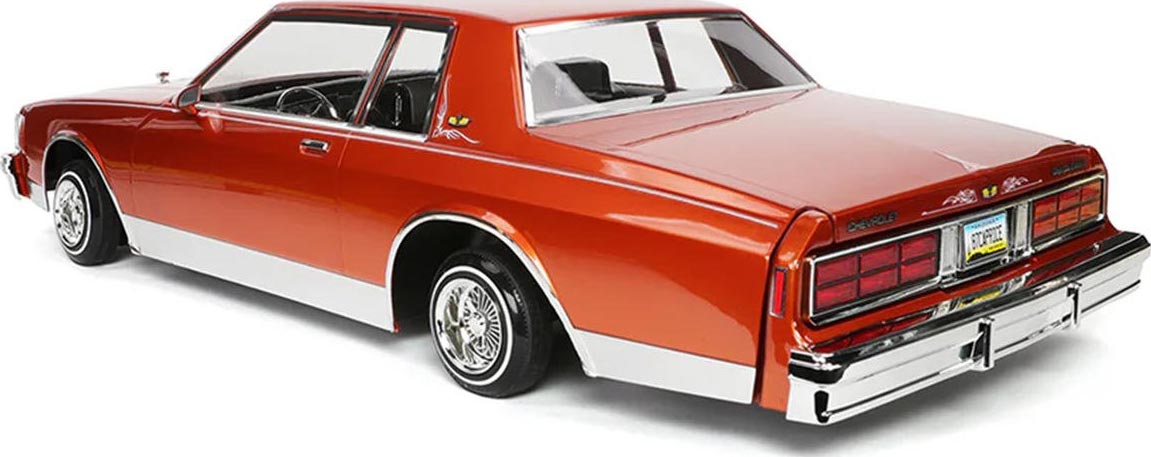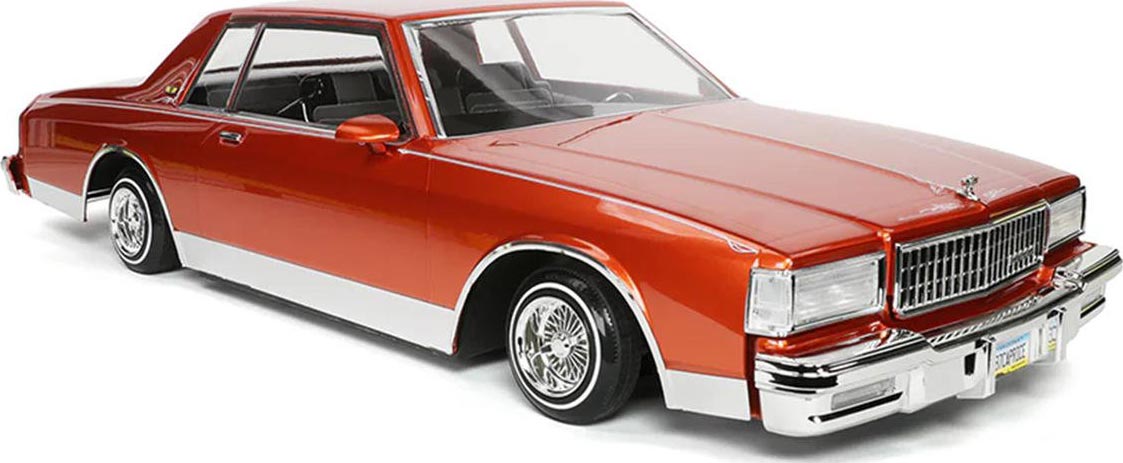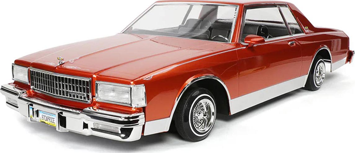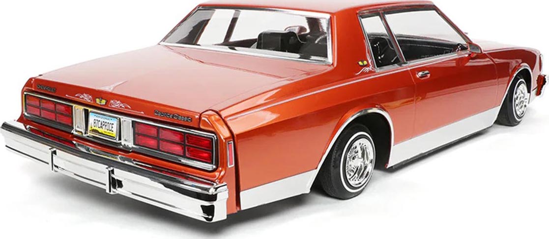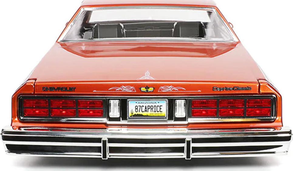 The 1987 Chevrolet Caprice is a detailed 1/10 scale replica that captures the unmistakable style of this classic full-size sedan. It features finely molded details including chrome bumpers, grille, trim, and emblems, along with a pre-painted and assembled body for a showroom finish. Designed in true lowrider fashion, it highlights authentic styling cues while offering adjustable components for customization and personalization to match your unique lowrider vision.