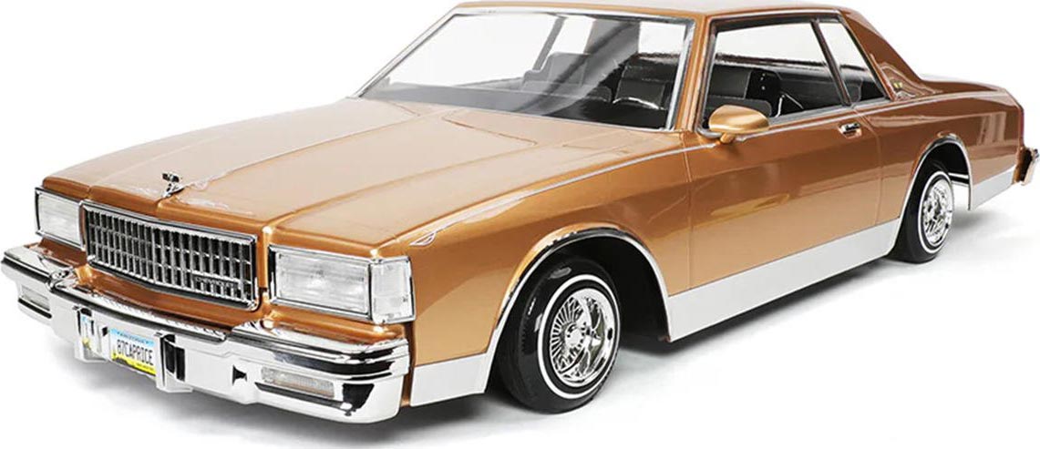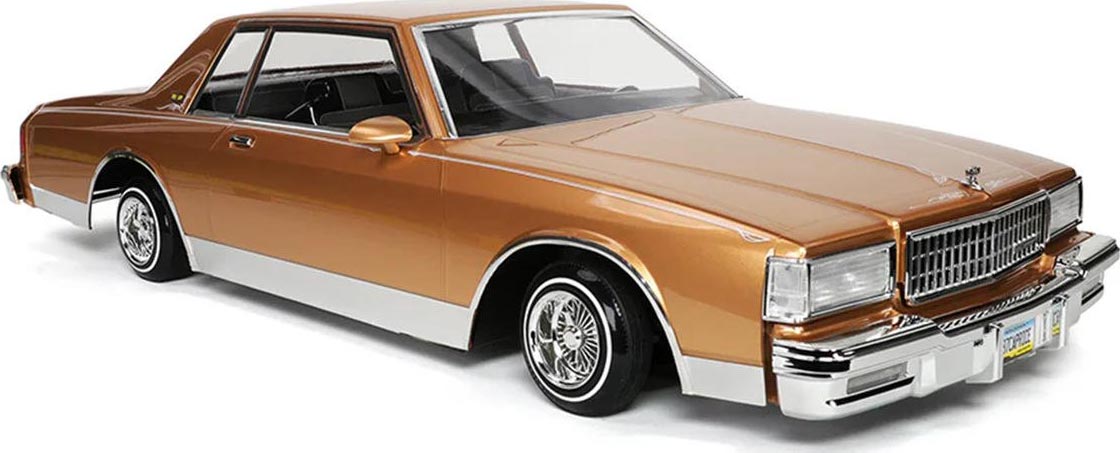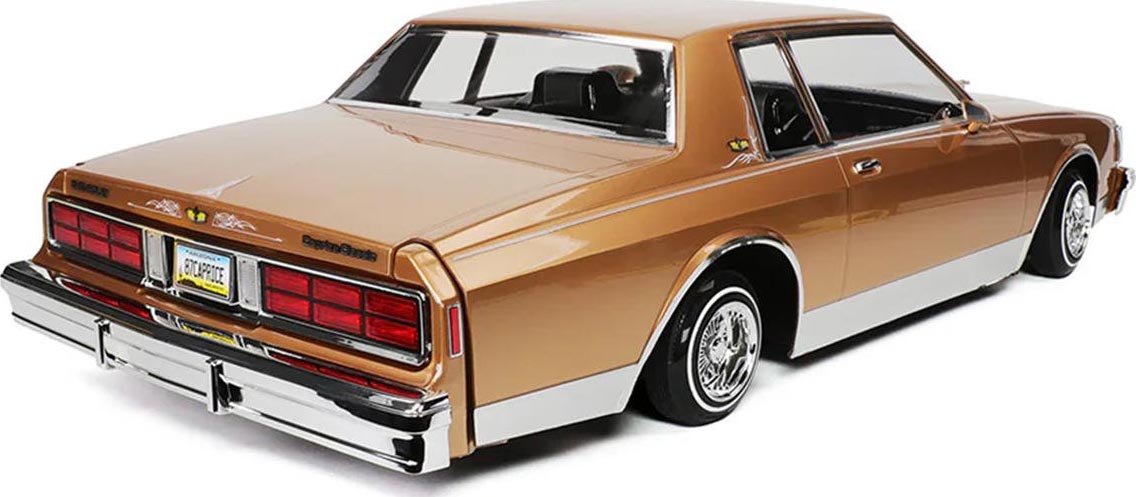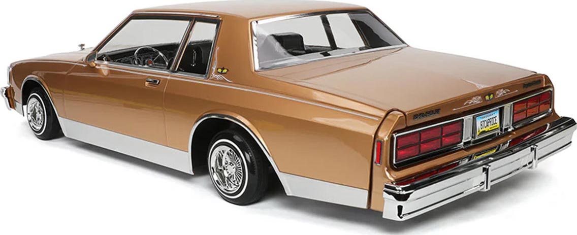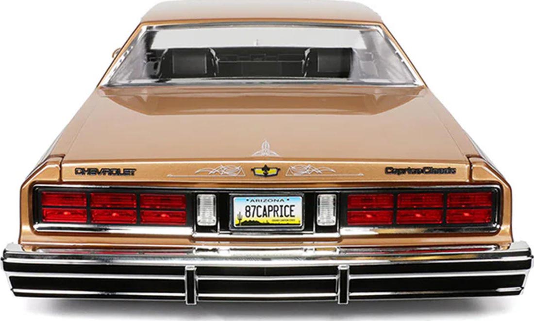 The 1987 Chevrolet Caprice is a detailed 1/10 scale replica that captures the unmistakable style of this classic full-size sedan. It features finely molded details including chrome bumpers, grille, trim, and emblems, along with a pre-painted and assembled body for a showroom finish. Designed in true lowrider fashion, it highlights authentic styling cues while offering adjustable components for customization and personalization to match your unique lowrider vision.