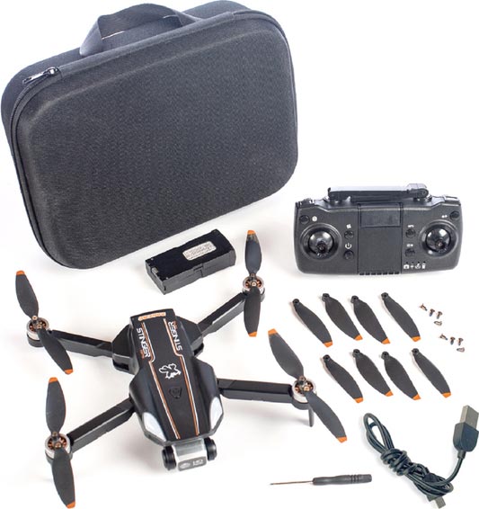 The Stinger GPS FPV Drone is the next generation in the popular line of Stinger Drones. With the added GPS capability, it's a great introduction to the use of important GPS features, like waypoints and return home, in a value-priced drone. The Stinger GPS comes complete as an RTF, so everything you need to start flying is in the box. The Stinger GPS comes loaded with many of the same convenient features as the Stinger 2.0. In addition to typical features like Auto Takeoff/Landing, Altitude Hold, and a 6-axis gyro system, the Stinger GPS also includes a 1080p HD camera with a 1-axis control (up and down) from the transmitter. Plus, like the 2.0, a second downward-facing fixed camera provides another viewing perspective during flights. As a step up from the previous Stingers, the GPS comes with a hard sided travel-type case with soft foam packing for all the components - plus a cartridge-style battery that provides up to 25 minutes of flight time!