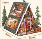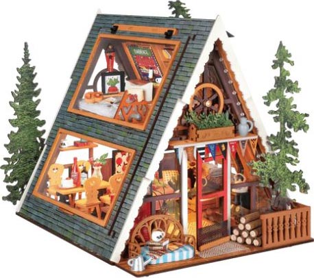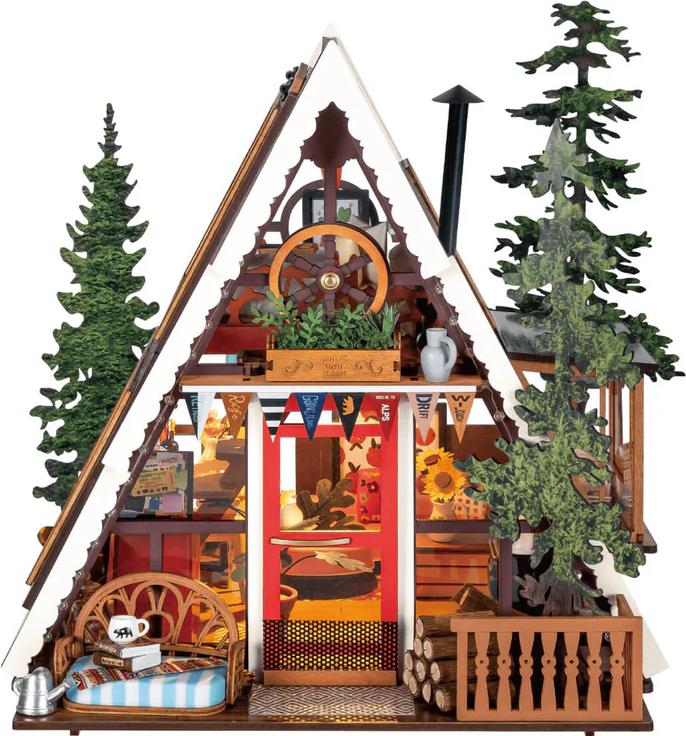 Come live your glamping dreams at the Rolife A-Frame Cabin, a DIY miniature house featuring a modern triangular design. Bring the cool, refreshing ambiance of the outdoors to your desk, complete with sunlight streaming through large, glass walls and a huge, openable window. This clever structure is filled with interactive details, including an outdoor rattan sofa, wooden porch railing, sunny living room, full dining area, wooden staircase, and an attic-style bedroom. There’s even a balcony mini-garden where fresh herbs grow in a wooden crate. A wood-burning oven warms the home and cooks the food, picture frames line the walls, and a guitar rests on the bed. There’s so much to do and see at the A-Frame Cabin, so start building this detail-packed 336-piece challenge.