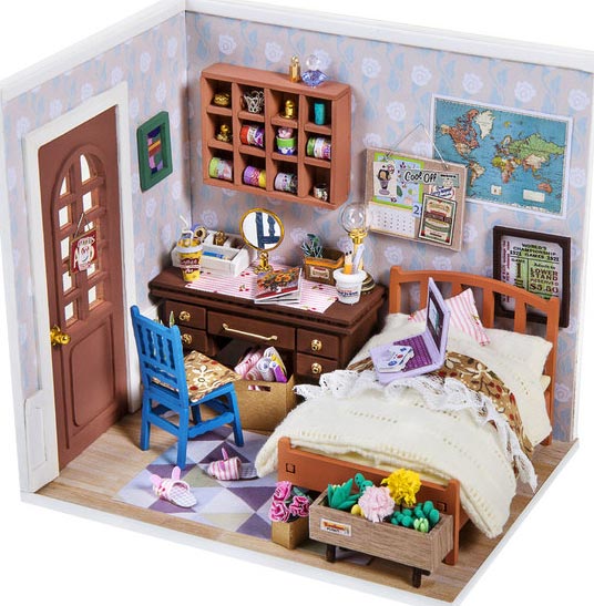 Anne's Bedroom captures the room a modern teen girl who loves making journal. On her desk is full of decorative tapes and seals. Specially made wall art shows a good taste and passion in life. Is the chair behind door trying to hide some secrets?