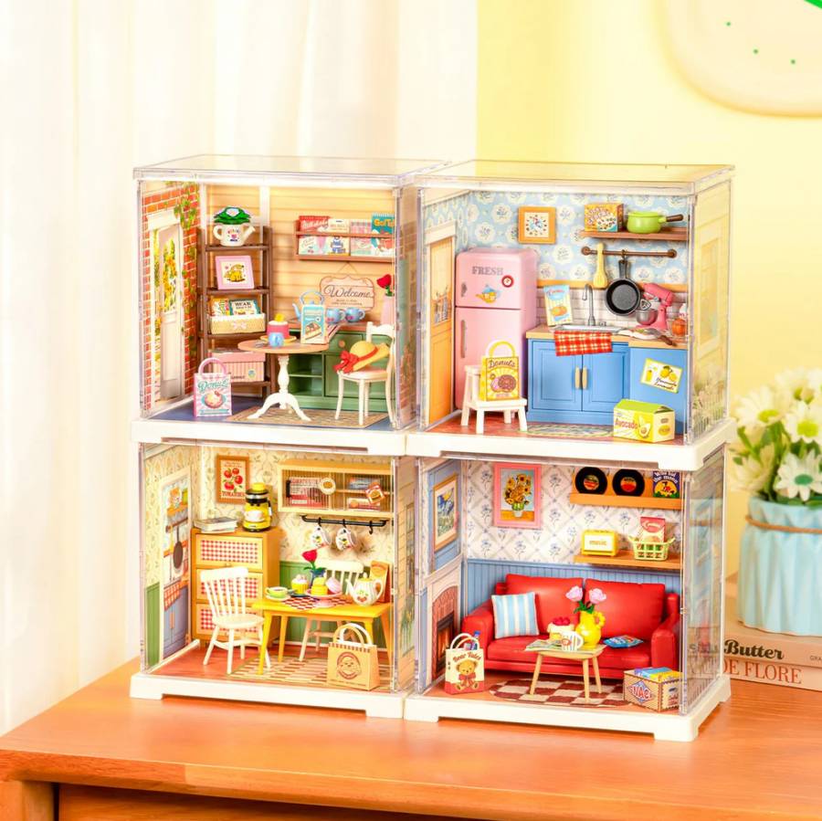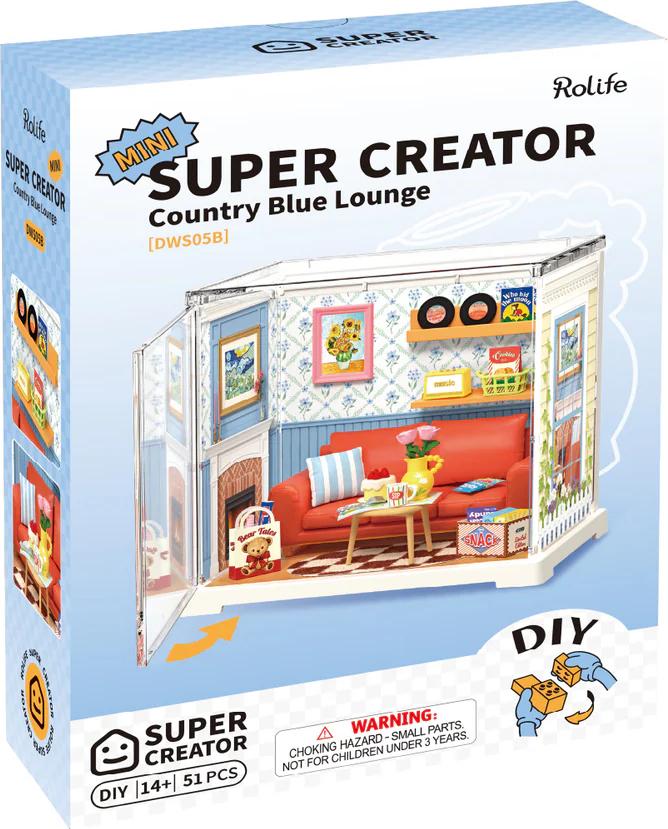 With the Country Blue Lounge, the designers at Rolife wanted builders to feel at home by capturing the simplicity of countryside life. This DIY miniature features rustic touches that complement its retro vibe, such as the flowers, paintings, and white picket fence. The model was designed for beginners to taste the joy of creating, as well as anyone seeking a quick and satisfying miniature house project to display right away. Enjoy its easy-to-connect pieces and approximate 30-minute build time. Once you finish the Country Blue Lounge, you’ll want to assemble more, so explore the rest of the Mini Super Creator Series and start stacking your own community of collectibles!