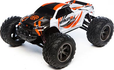 The Revolution® Forge™ MT is the ideal 1/12-scale monster truck for getting into backyard bashing and road-ripping action. Fully assembled right out of the box, the Forge MT is equipped with hard-hitting features you won’t find in most entry-level 2WD vehicles such as a high-output motor, Lithium battery power and a 2.4GHz pistol-grip radio.
