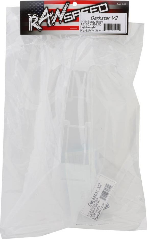 Raw Speed RC Team Associated B6.4 and B6.4D Darkstar V2 1/10 2WD Buggy Body. Designed to enhance performance and aerodynamics, this optional Interceptor body is intended for the B6.4 and B6.4D platforms as a performance upgrade. Available in both standard and lightweight options to choose from. Package includes a clear body with a windows mask sheet and Raw Speed decals.
