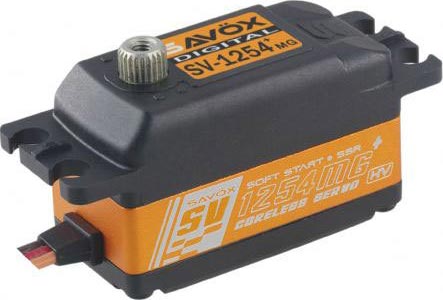 The SV-1254MG servo is a high performance coreless servo with good torque and fast transit time in a low profile package.