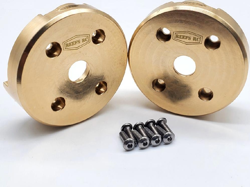 Upgrade your Axial SCX10 Pro, Axial 1/10th Capra, or Axial SCX10 III with AR45P Axles with the REEFS180 Brass Portal Cover Set. These portal covers provide 89g of weight each with the majority of the weight below the centerline for a lower center of gravity.