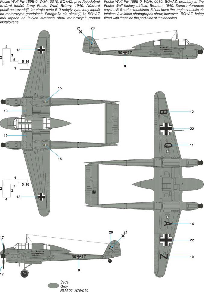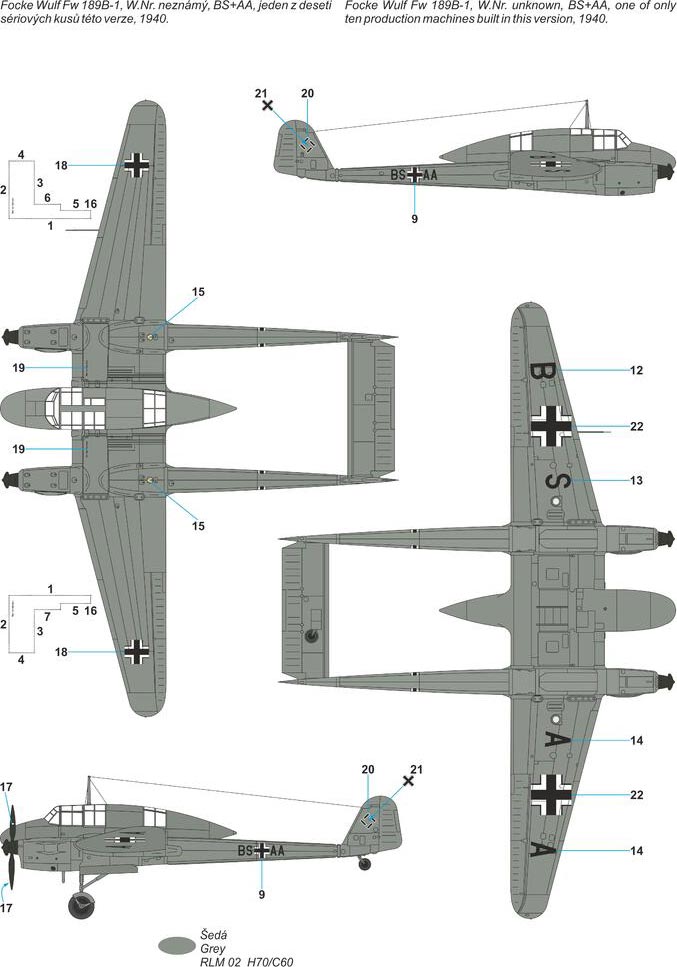 1/72 Focke Wulf Fw 189B-0/B-1 Luftwaffe Trainer