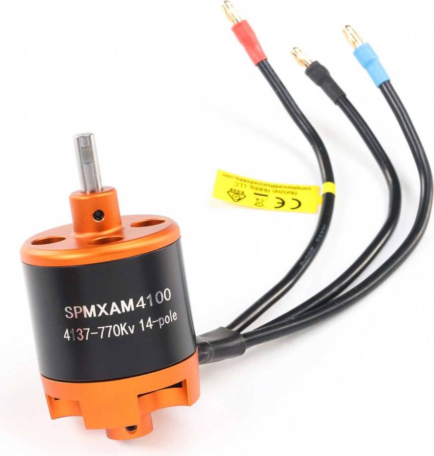 This Spektrum Brushless Outrunner Motor, 3741-770kv 14-Pole features 3.5mm bullet connectors and 12awg motor wires.