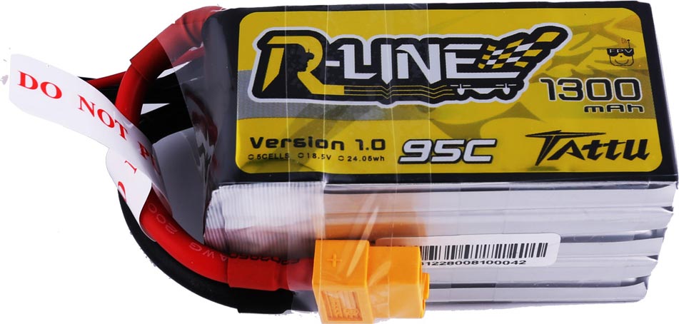 Tattu R-Line 1300mAh 95C 5S1P LiPo battery pack. What is R-Line? R-Line is a brand new product line specifically designed for professional FPV racing competitions. It's the selling version of Toppilot batteries. It's also a subsidiary of the Tattu brand. It's got higher capacity, lower internal resistance, and lower landing temperatures. They are more powerful than any graphene battery. Generally, R-Line batteries have the same specs as our popular Toppilot batteries.There are different R-Line versions for the needs of different FPV racing competitions.