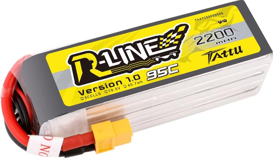 Tattu R-Line 2200mAh 5s 95C lipo battery pack is the best FPV lipo battery with high quality and reliable power and local service. Suitable for 7” long range FPV drone. The high rate makes it great for 7" spec FPV racing, etc street league racing.