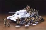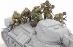High quality, detailed 1/48 figures featuring dynamic and realistic poses such as jumping off of tank, charging and towing Maxim machine gun.