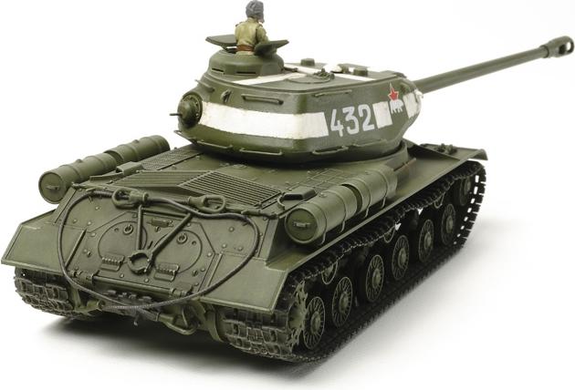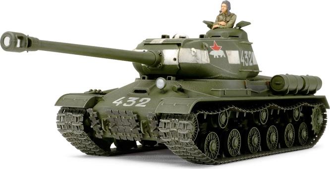 The Russian Heavy Tank JS-2 was built to counter the German Tiger I. The JS-2, which was put into production in December 1943 during the latter half of WWII, had a long powerful 122mm gun and superior armor. From August, 1944 the hatch on the front glacis was deleted, which greatly improved its frontal protection. The JS-2 was produced in the Chelyabinsk Kirov factory (ChKZ), and they proved to be effective as "breakthrough" tanks as well as combating German armor. The Tamiya 1/48 scale model kit faithfully captures the details of this iconic World War II machine.