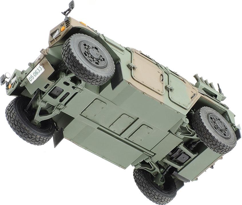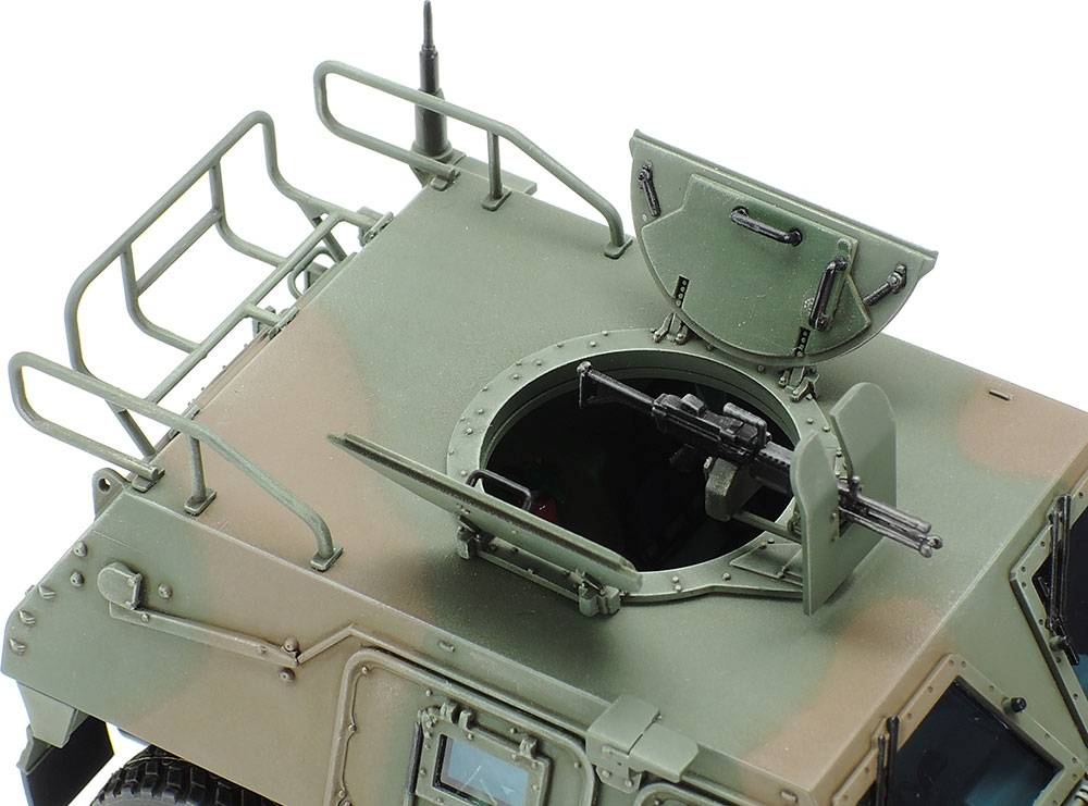 Assembly options include rooftop hatch in open or closed position, quadruple smoke dischargers (usually seen on command cars), and MINIMI machine gun.
