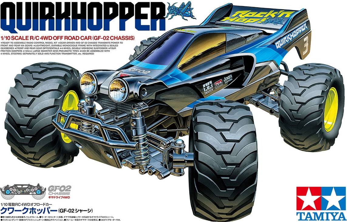This R/C kit depicts the Tamiya Quirkhopper, an original body design mated on the easy to build GF-02 chassis.